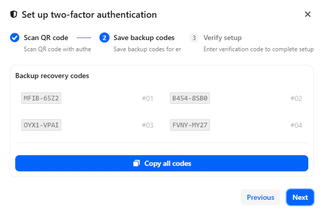 Step 2: Save Backup Recovery Codes