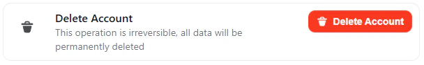 The Delete Account action permanently removes your account and associated data.